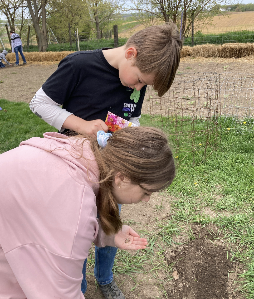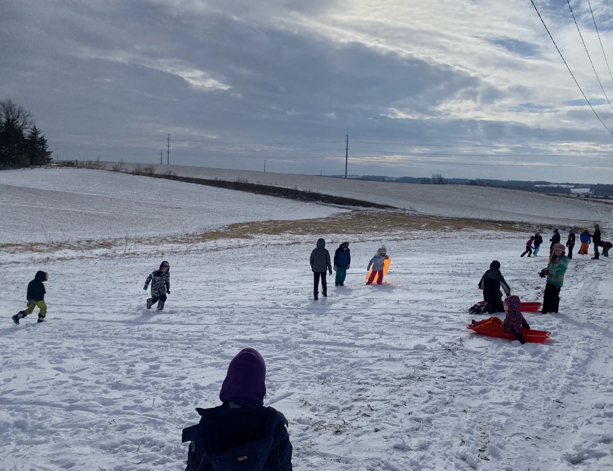 Located on 14.5 acres just outside of Iowa City, Iowa, The Country School offers children a wide range of outdoor activities and learning. The acreage includes the school/theatre, two pastures, a gazebo, a flower garden, sand mountain, a vegetable garden, dragon mounds, pirate ships, hobbit house, potion shop, cow and sheep barn, chicken house, small orchard, small village within an evergreen grove, a pond, and our farmhouse